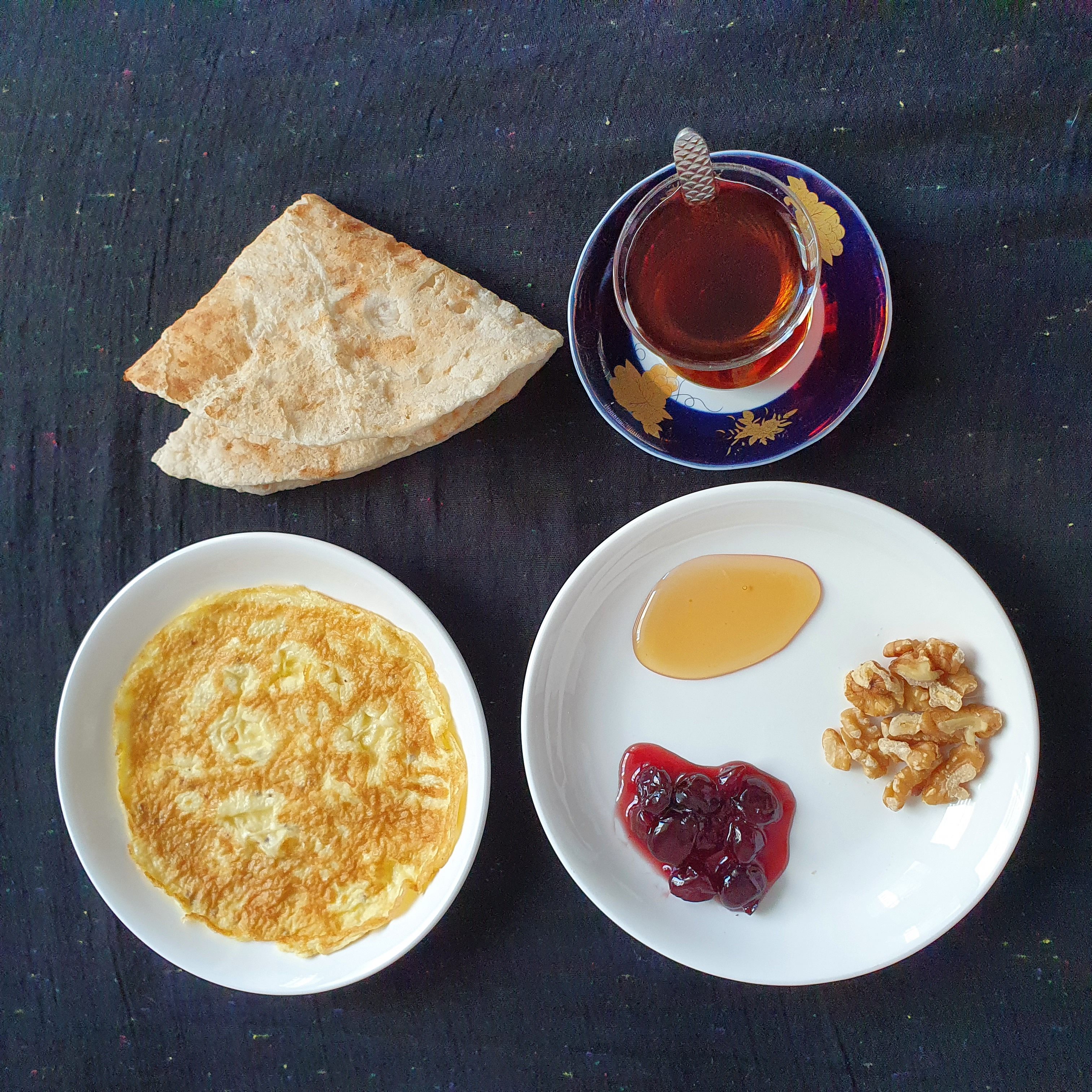 The two first breakfast ideas are what we, Kurds, normally have for breakfast. It is not always the same order, you can mix it up, you can have tomatoes with boiled eggs, you can have yogurt, whatever you like. And we like to have tea with breakfast.